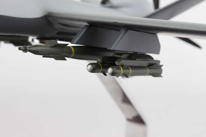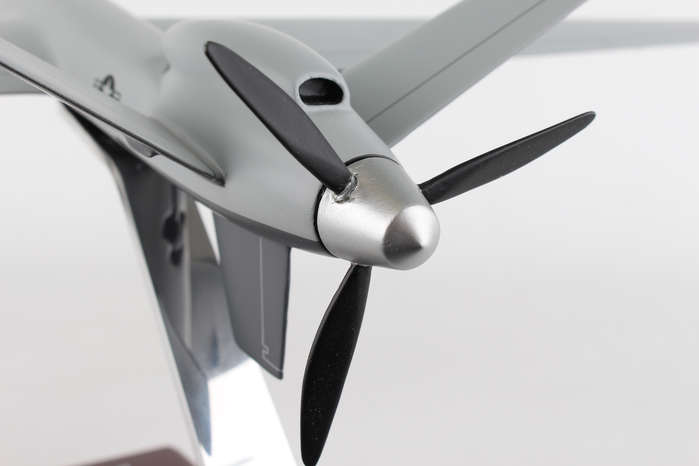 This high quality replica is handcrafted from mahogany and comes with a wooden base. Length is 6 3/4" and wingspan is 18".